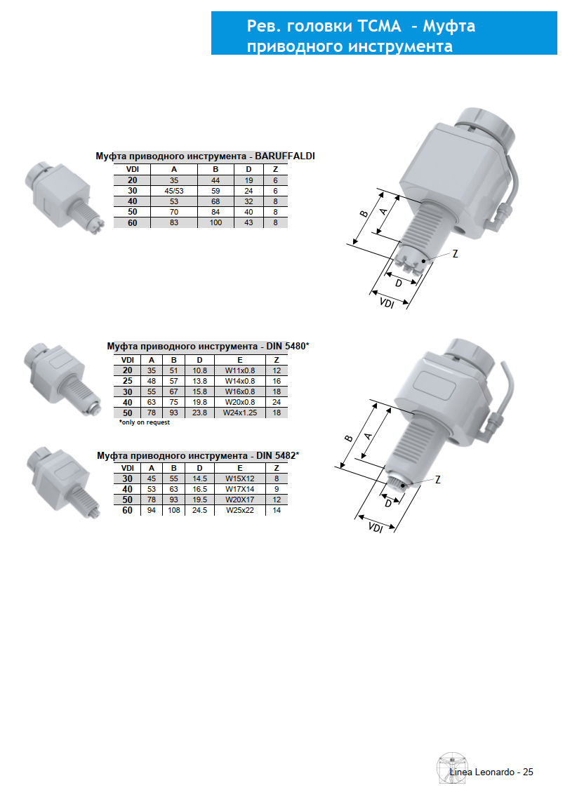 Ниже предлагаем ознакомиться с каталогом револьверных головок Baruffaldi Linea Leonardo.