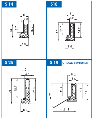 Они производятся по требованию заказчика на базе чертежи. Для сваренных съемников можно применить профили С14, С18 и С25. Предварительный натяг съемника – 1 мм. Можно применить также нержавеющий предсъемник.