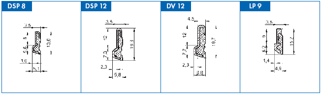 Для телескопических кожухов предлагаем истирающие системы со стальным профилем из нержавеющего листового металла типа ДСП 8 (также в исполнении с демпфером), типа ДСП 12 и ДВ 12 длинами в 1000 мм и 3000 мм (ДСП 8 с демпфером только 500 мм).